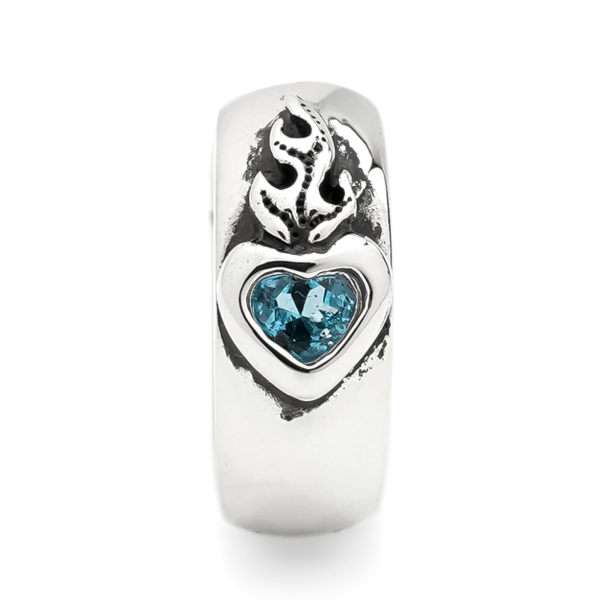 At the center, a blue topaz adds a refreshing sense of clarity and light, bringing a clean and luminous presence to the piece.