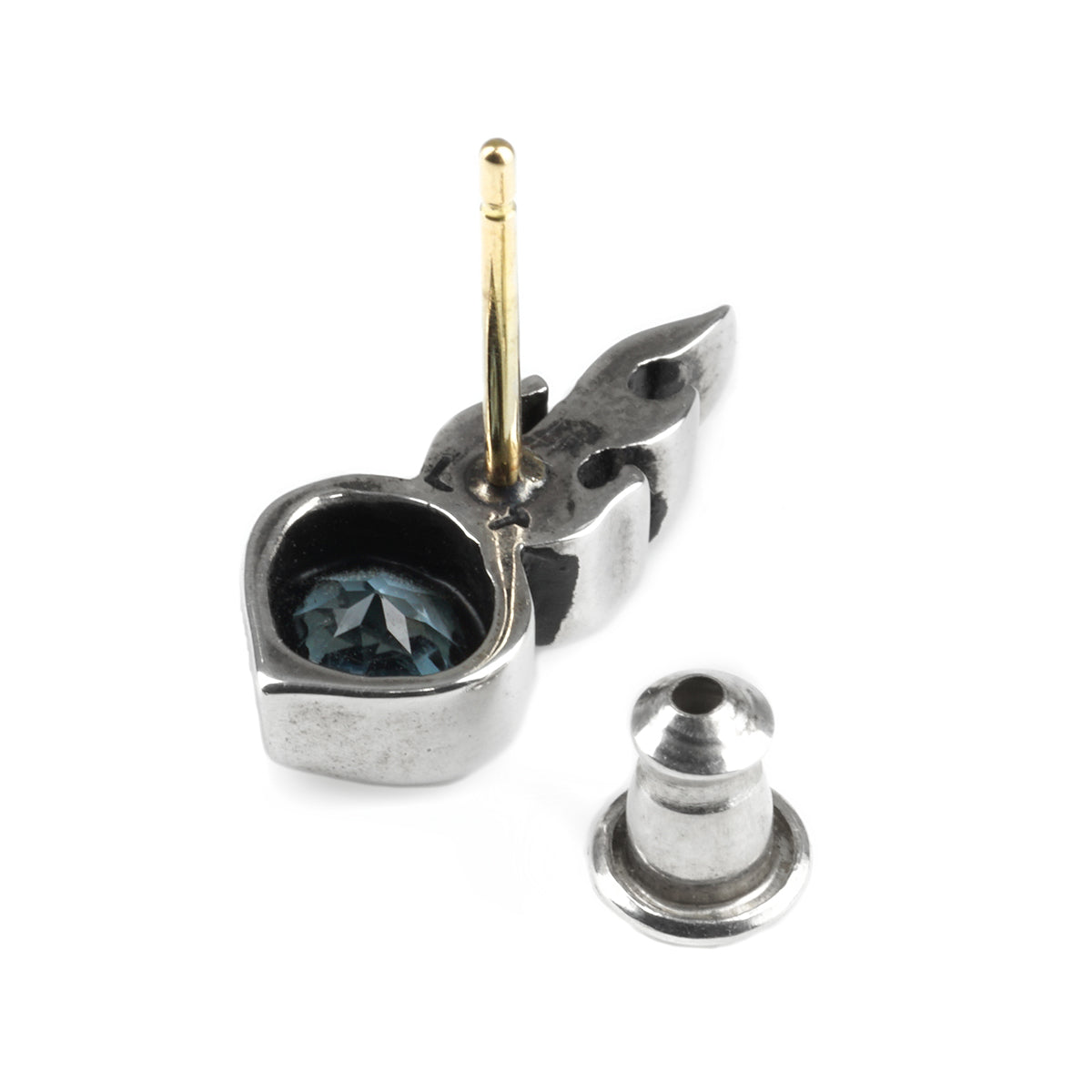 Earring : Small Sacred Heart Stud w/Blue Topaz