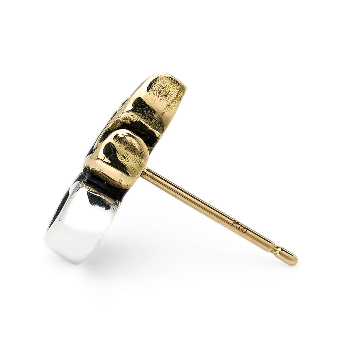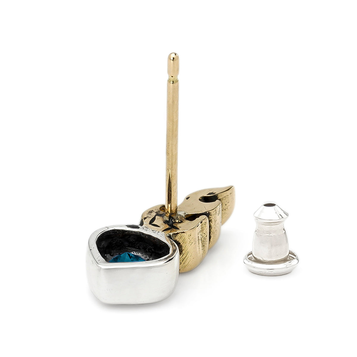 Earring : Small Sacred Heart Stud w/K18Flame w/Blue Topaz